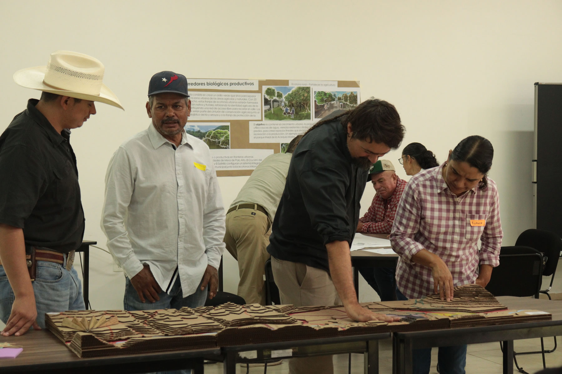 A partir de lo aprendido en los talleres anteriores, se presentaron seis propuestas que colocan al área agrícola de conservación como el corazón del paisaje de Concá. Estas ideas se explicaron de manera clara mediante videos y una maqueta, lo que permitió que las y los participantes las comprendieran y comentaran fácilmente.